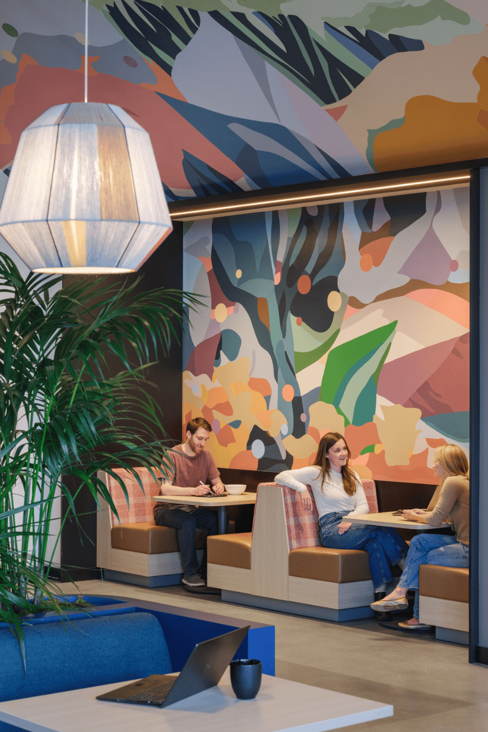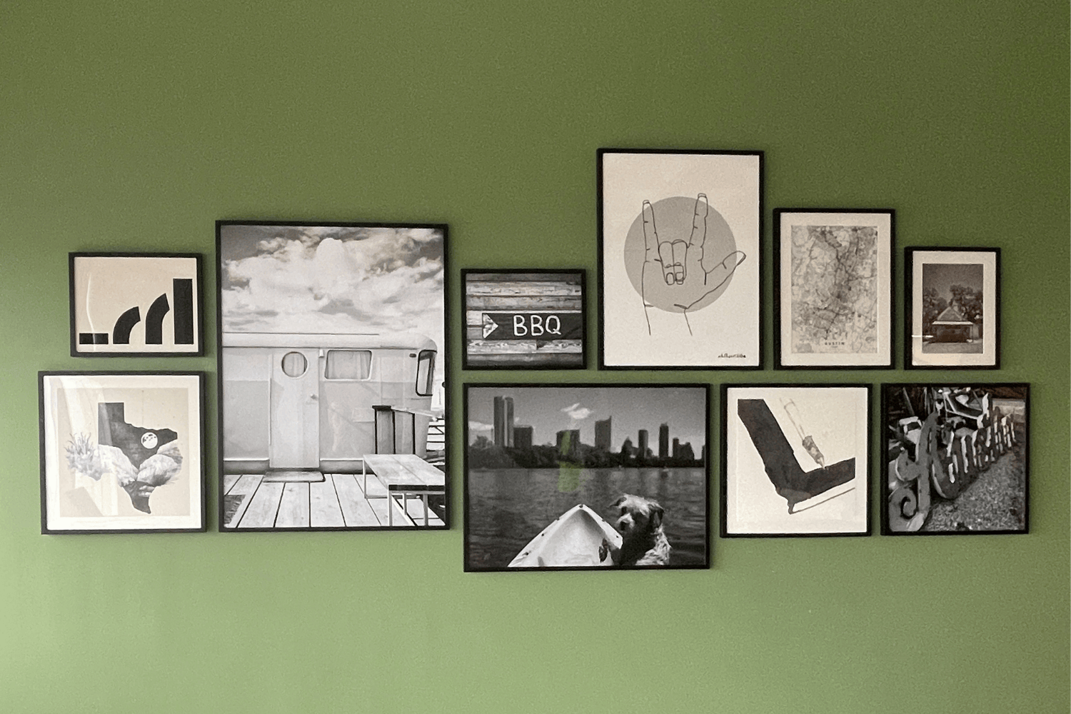 Complementing the mural, a series of framed prints draws inspiration from the peculiar and weird elements of Austin’s culture. Together, the office art supports the local arts community while grounding the workplace in authenticity, making the space a true reflection of Austin’s spirited and eclectic culture.