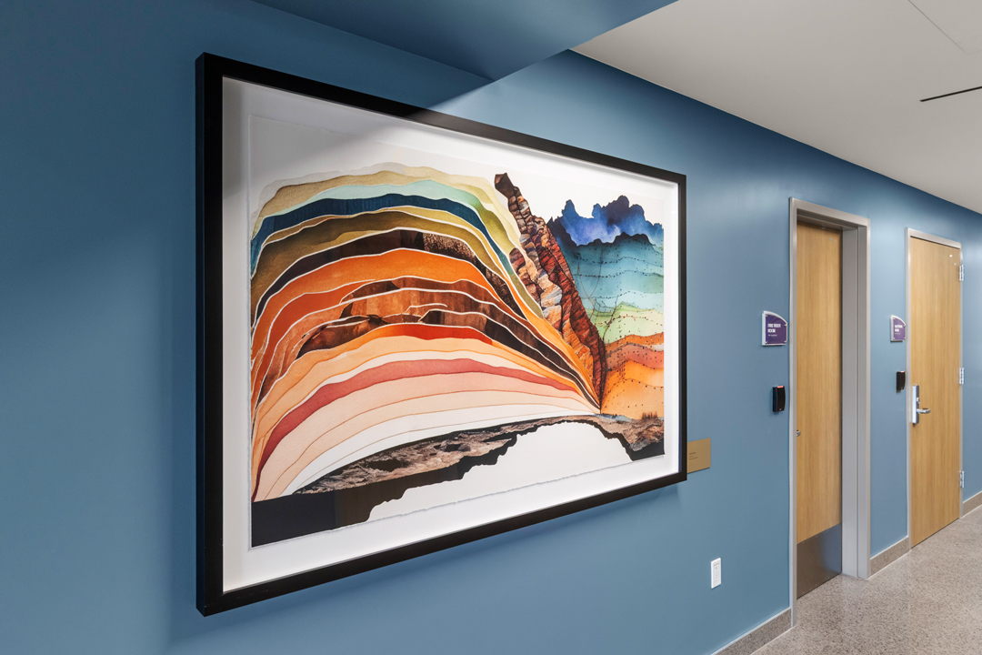 At Renown Healthcare, art supports the healing journey from the moment visitors arrive. Across waiting rooms, corridors, and nursing zones, the collection was curated to reduce anxiety and restore focus through subtle color and texture. Drawing on natural palettes and woven forms that echo the surrounding Sierra Nevada landscape, each piece offers a moment of stillness between waiting times.